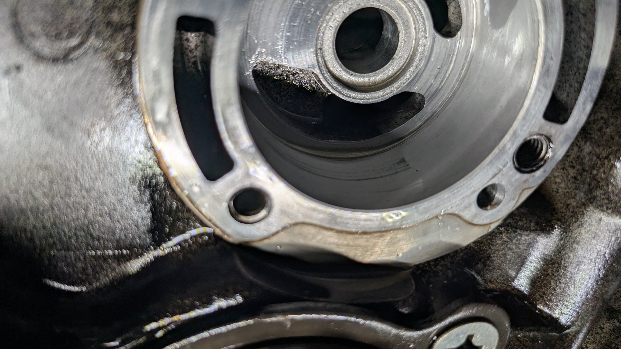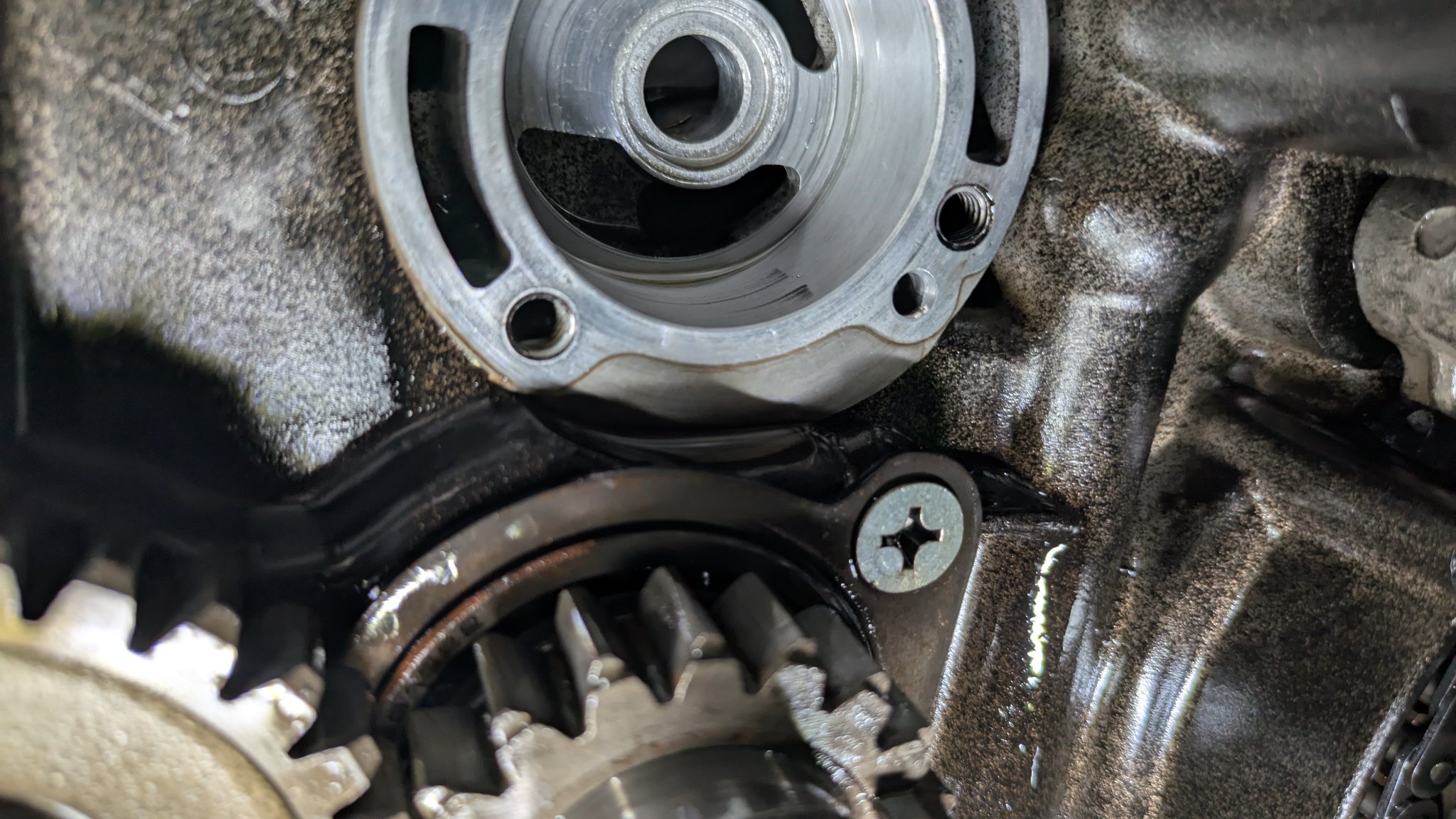 ...die Primärpumpe ist durch, die sekundäre zum Rahmen sieht noch passabel aus. Unbedingt das Rahmenölsieb mal checken. Ich würde hier alles mal neu einsetzen bzw. gegen "gut gebraucht" mit neuen RWDRs tauschen.