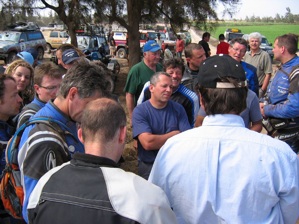 Marco hat bei seinem Vater im Hotel geschlafen, unweit des HL Hotels. Wir treffen ihn um 8.00 Uhr beim Frühstück. Das Frühstück ist er kläglich, nur Baguette, Marmelade und Butter. Es wird schnell deutlich, dass der Cateringservice in den Biwaks ganze Arbeit geleistet hat. Nach dem Essen machen wir uns fertig und starten etwa gegen 10.00 Uhr. Lutz fährt mit der XT vor. Marco, sein Vater und ich im Landy, irgendwie ohne Roadbook, aber es wäre ja eh falsch, denn der Start ist bei km 15,08 im Roadbook. Immerhin haben wir den GPS Punkt von km 15,08 und können so den Start finden. Es ist noch kein Organisator dort. Nach und nach treffen die Teams ein. Es geht los um 11.00 Uhr, doch Team 4 (Uwe), Team 8 (WOT&P) und Team 5 (Lutz) sind nicht da. Irgendwann während des Starts trifft Uwe ein, später Arno und zuletzt, kurz vor dem Start des Letzten auch der Lutz. Er war so früh am Start, dass noch niemand dort war und der die Strecke schon einmal gefahren ist. Nun denn, er startet als Letzter und wir fahren ganz langsam zum Lunchplatz in den Dünen. Der Ort ist schön gewählt mit Palmen und Blick auf den Lac Rose. Mit Absperrband ist eine Umrandung gespannt und wir erkennen schnell, welchen Zweck sie erfüllt. Am Band entlang versammeln sich die örtlichen Souvenirhändler und bieten ihre Waren feil. Es ist ein wenig anstrengend zum Auto zu gehen, da man den gesamten Weg umringt und vollgelabert wird. Wir essen, machen Fotos und bewundern die XT von Peter van den Bosch, bei der das Pleul vorne aus dem Motor geschlagen ist. Damit hätte er den zweiten Motor vernichtet, nicht schlecht. Wir beschließen zum Hotel zu fahren und den Heckträger abzubauen. Ich hatte Anne Marie gefragt und sie wollte Auto und XT lieber einzeln haben. Anderen hat sie es wohl nicht gesagt, denn sie verladen die XT auf ihre Heckträger. Egal, wir zerlegen den Träger in alle Einzelzteile und verstauen ihn auf dem Dach und im Auto. Auch sonst sortieren wir die Klamotten nach dem was mit kommt und was im Auto bleibt. 20.00 Uhr gibt es ein kurzes Briefing bezüglich des Hafens, wo wir um 15.00 Uhr sein sollen. Danach gibt es Essen und um Anschluß im Keller in einer Art Disco/Partykeller die Preisverleihung. Jeder erhält eine schwere HL Plakette. Letzter ist Werner vom Team 1. Dritter ist Team 21 mit dem Betonbauer. Zweiter sind meine Freunde Bruno, Christophe und Daya mit dem Military Landy und erster das Team Mont Blanc. Allen Helfern wird gedankt und es ist vorbei. Kurz nach Mitternacht gehen Lutz und ich auch ins Bett.
