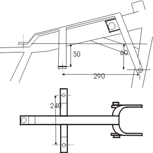 Die Skizze ist zwar nicht für Nachbau geeignet könnte aber Ideen wachsen lassen - Der fette Tank lässt noch vollen Lenkeinschlag zu aber die Sitzposition nach vorne geht leider nicht weiter, ausser man würde den Tank zwecks Öl-Kontrolle demontieren...