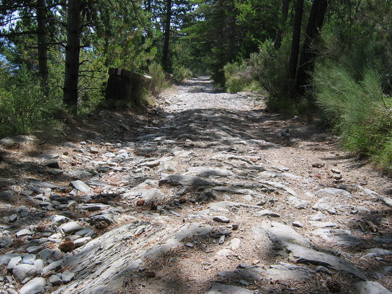 Schon auf dem Hinweg habe ich eine Abzweigung nach Norden gesehen und auf der Karte kann man sehen, dass dort eine Piste zum Col de Brouis (879m) führt. Wir fahren sie und sind gleich begeistert. Eine schöne Piste, die die Vorfreude auf die kommenden Tage wachsen läßt.