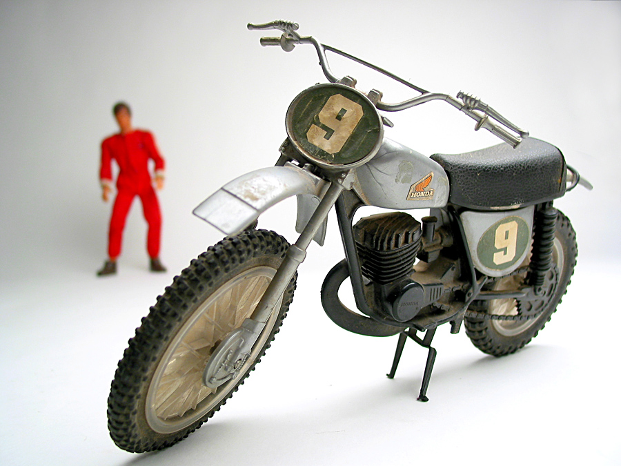 Muss gerade schmunzeln, weil genau so ein Modell bei mir in der Werkstatt vor meiner Yamaha-Reklame hängt, mit Big Jim drauf!So. Hab´ eine gekauft. Und für mich ´nen roten Overall dazu