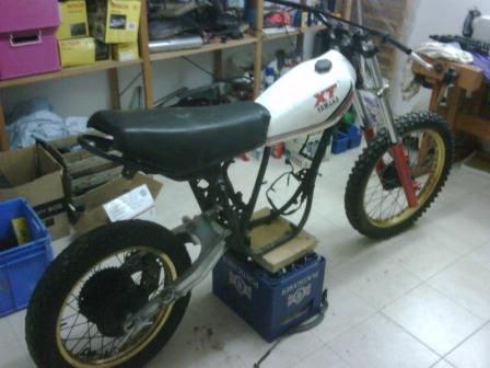 Ich hatte vor ein paar Jahren eine Maico MC250 Bj 81 günstig erstanden und wollte in das Fahrwerk der Maico einen XT500 Motor verpflanzen – ganz im Stil der alten Yamcos oder Yamamaicos…ein Ami namens Lanz hat einen solchen Umbau ins Netz gestellt (http://gelanz.com/xt500/hl500.html)– das hat aber dann doch relativ kompliziert ausgesehen - mit Rahmen zersägen und Rohre einschweissen usw..Da hat mir die Arbeit von twinshocker im offroadforum schon besser gefallen (http://www.offroadforen.de/vb/showthrea ... terprojekt).
