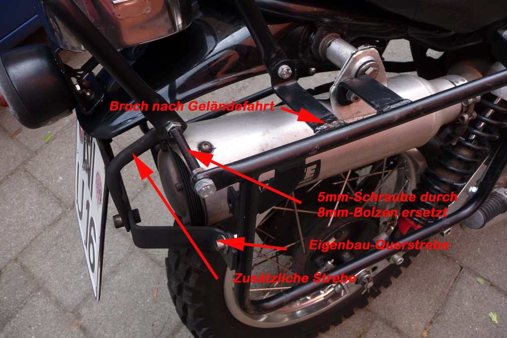 Habe den Gepäckträger mit etwas Bastelei an der Supertrapp montiert bekommen.