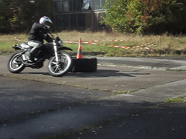 Wenn aber bei einem solchen Training nur 14 (dafür ein Danke !) sog. Super-Moto-Fahrer aufkreuzen - 14 aus einer Fraktion mit geeignetem Gerät, Regenreifen, Protektorenkombis und dem immerwährenden Ruf nach Möglichkeiten, die eigenen Heldentaten dem Rest der Zweiradwelt mal zu zeigen - dann Gute Nacht.