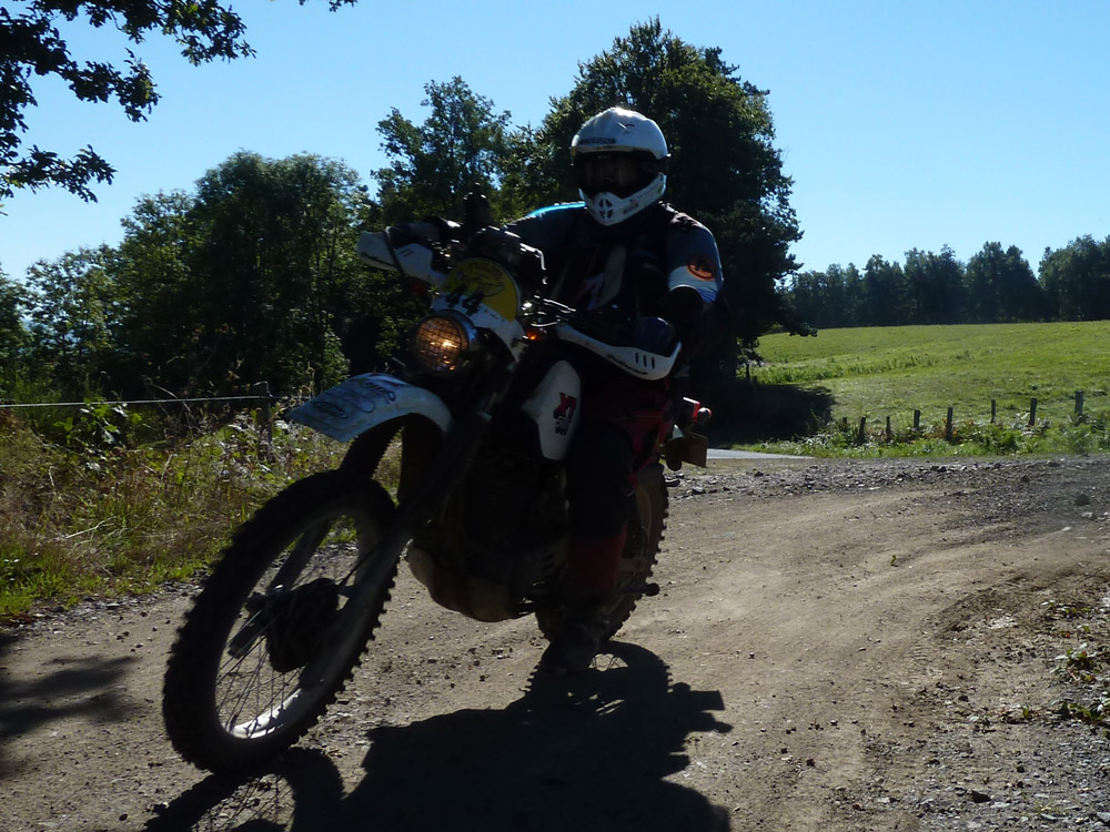 Gleich am Anfang des Tages fahren wir eine recht steile Abfahrt. Natürlich ist gleich dahinter ein CP (Checkpoint), damit die, die die Umleitung fahren, keinen Stempel bekommen.