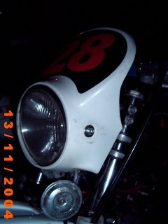 Lampenmaske der Honda MTX 80 an XT 500. Die gibt es auch in anderen Farben, z.B. in schwarz!