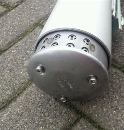 sorry für die späte Antwort, aber ich bin mir ziemlich sicher, daß es sich beidem Auspuff um einen der Marke "DEVIL" handelt.