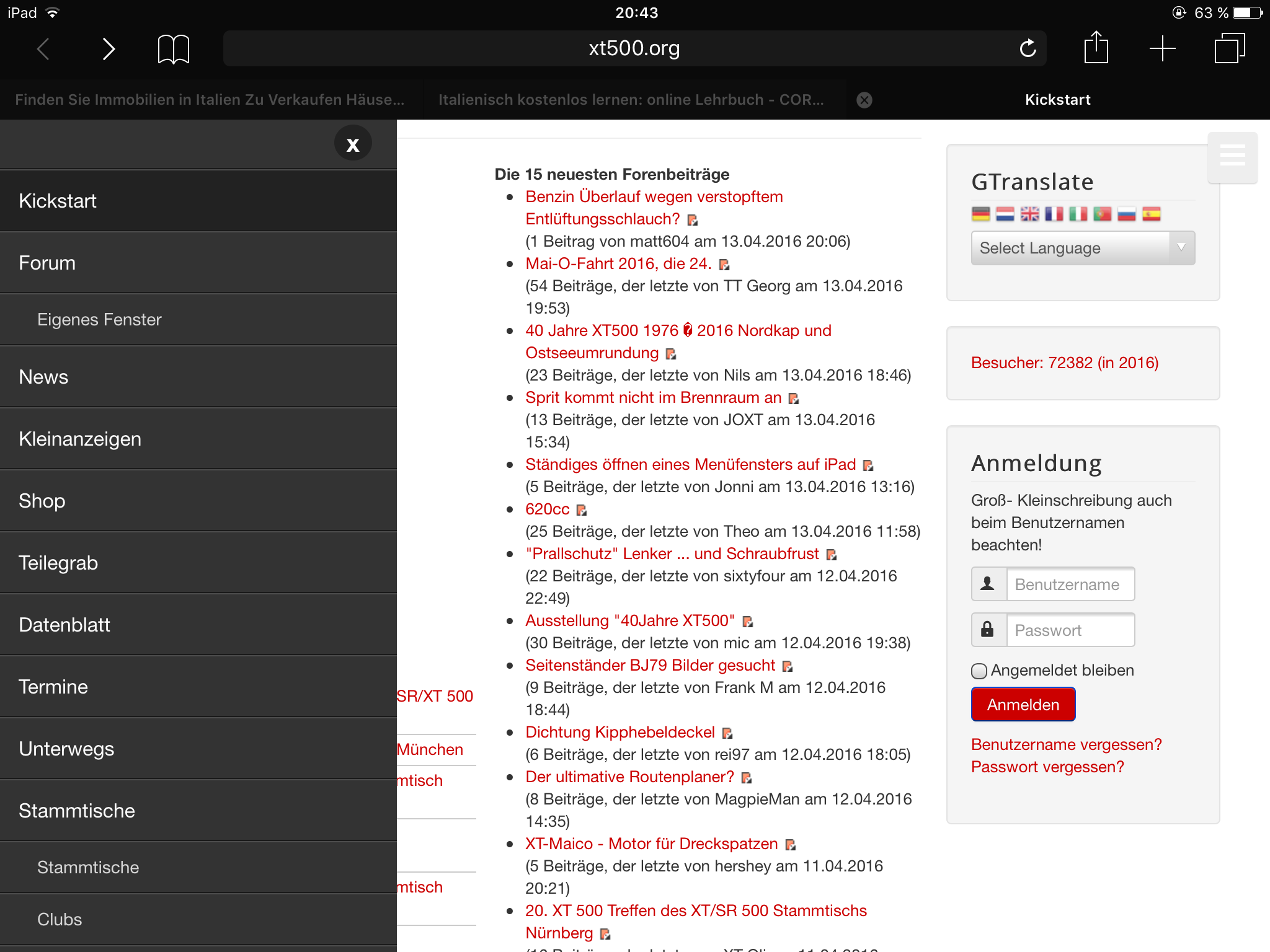 Oder meint ihr das mobile Menü der Seite? Das könnt ihr umgehen, wenn ihr das Forum direkt aufruft (Forum.xt500.org, oder auf "eigenes Fenster" unter dem Forum im Menü anklicken)