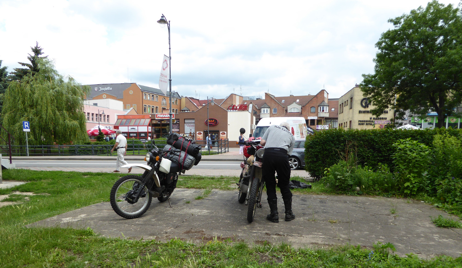 Wir wollten dann doch weiter, trotzdem wir immer noch nicht die ganze Burg gesehen hatten (dafür braucht man etwa zwei ganze Tage, denke ich), denn das Wetter drohte mit erhöhter Luftfeuchtigkeit. Kurz nach Mittag haben wir uns dann von Malbork verabschiedet - und hinter dem Kreisverkehr vor der Hauptstraße reißt mein Kupplungszug.