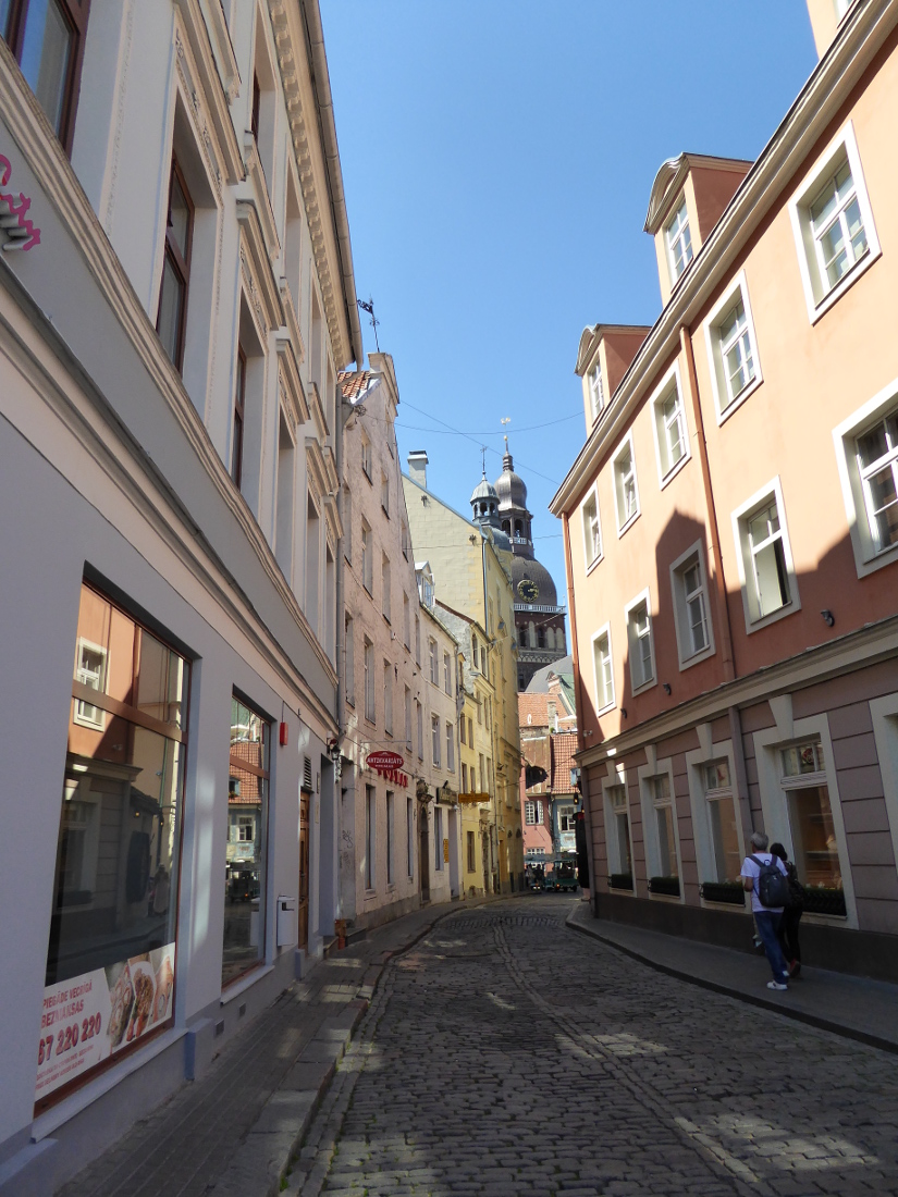 Gegen Mittag waren wir in Riga und wollten eigentlich gleich wieder raus - die Hitze war in unseren Klamotten kaum zu ertragen. Nachdem wir auf der Suche nach einer Zufahrt zur Altstadt die verschiedenen Brücken über die Daugava ausprobiert hatten, fanden wir einen ebenso hübschen wie illegalen Parkplatz in der Nähe des Doms direkt vor einer Touristenbar.