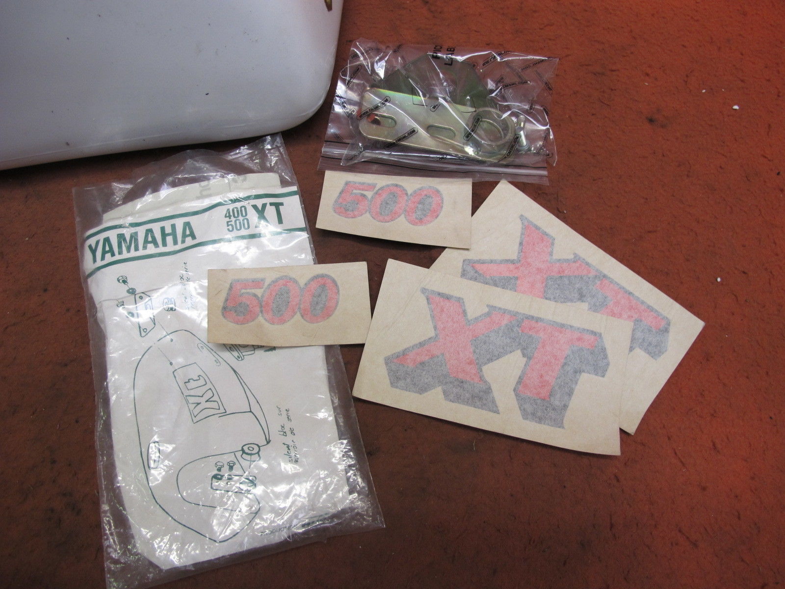 Er ist aus durchgefärbten schwarzen Kunststoff, Fassungsvermögen ca. 18L, er hat verzinkte Halter mit denen er auf die XT500 ab Bj. 80 passt. Benzinhahn wird der Originale von der 500er verwendet - Tankdeckel nicht. Die Einfüllöffnung hat ca. 50mm Durchmesser. Der Deckel der jetzt drauf steckt, ist vermtl. nicht der Originale sondern eher von einem Kanister...