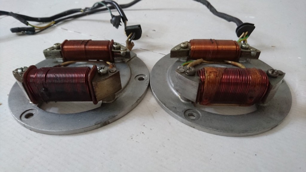 Eine aus einem 77er Motor und eine aus einem 80er Motor. Sie sehen minimal anders in der Wicklung aus, auch der Widerstand den ich mit einem Messgerät messe ist Unterschiedlich. Die 77er Wicklung zeigt mir 6 Ohm und die 80er Wicklung zeigt mir 7 Ohm an.