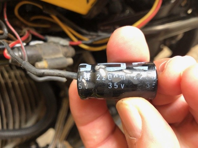 Dieser Kondensator ist als alleiniger Batterieersatz zu klein, kann aber bei einer angeschlagenen Batterie die Funktion des Reglers verbessern. Da kann ansonsten die Netzspannung zu niedrig sein. Normal sollte er die zehnfache Kapazität haben, und die knapp doppelte Spannungsfestigkeit besitzen, um ohne Batterie eine vernünftige Bordspannung zu bekommen.