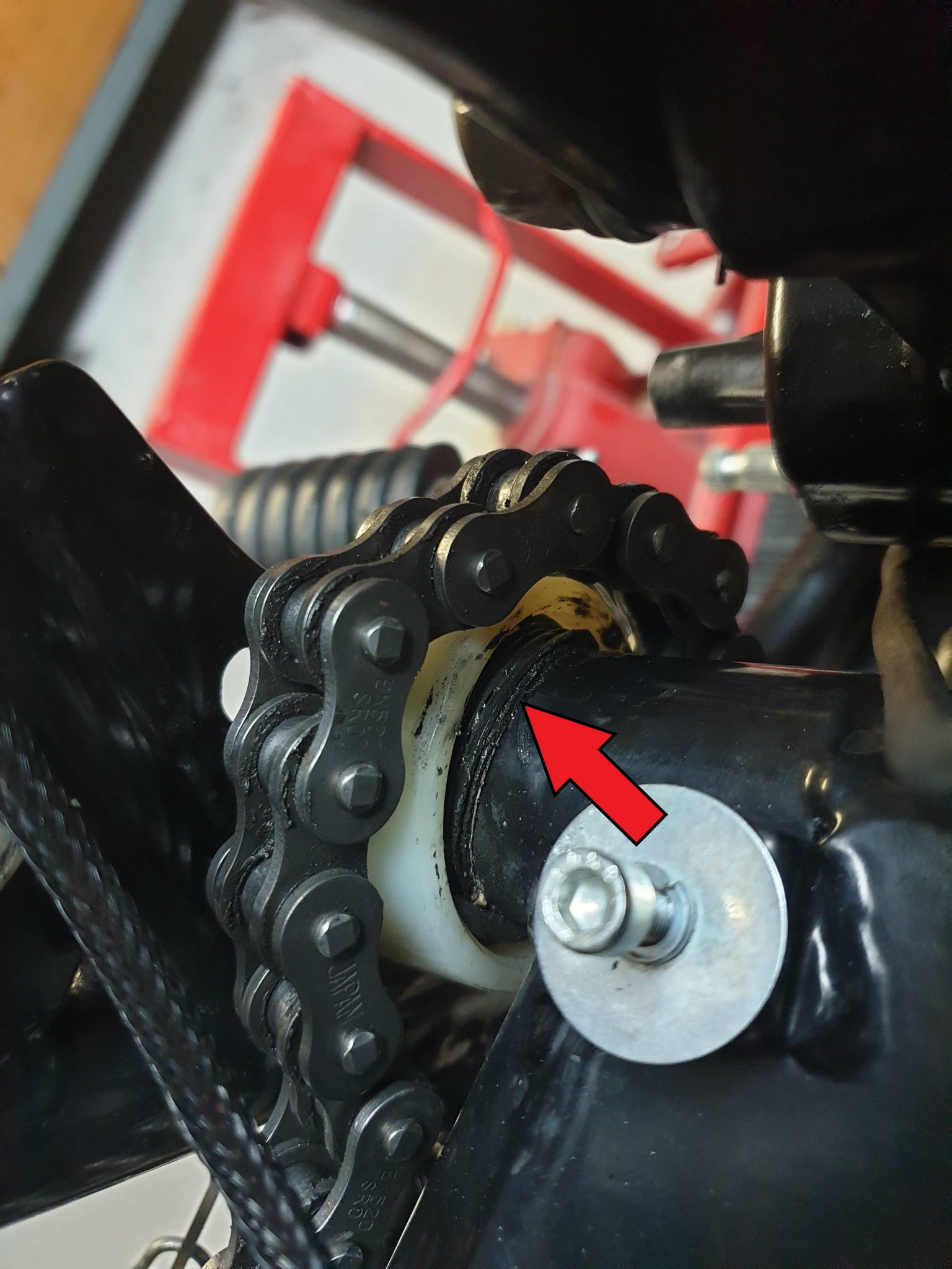 Vielen Dank an Euch! Ich denke der Vorbesitzer hat mit irgendeinen dünnen Gummilappen die Kettenrolle unterlegt. Gut zu wissen, dass der dort nicht hingehört.