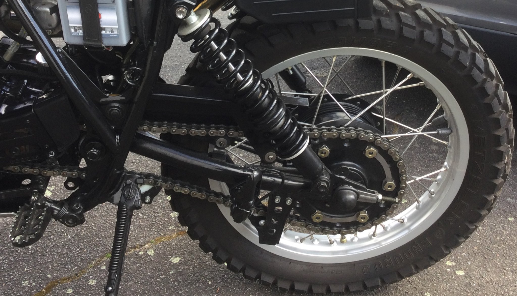 Für Soziusbetrieb war damals in .de (heute auch?) ein langer Kettenschutz und natürlich der Sitzbankriemen Vorschrift. Man stelle sich nur mal vor, die 70er-Jahre Schlaghose der zarten Sozia verfängt sich in dem ungeschützten Kettenrad... :lol: