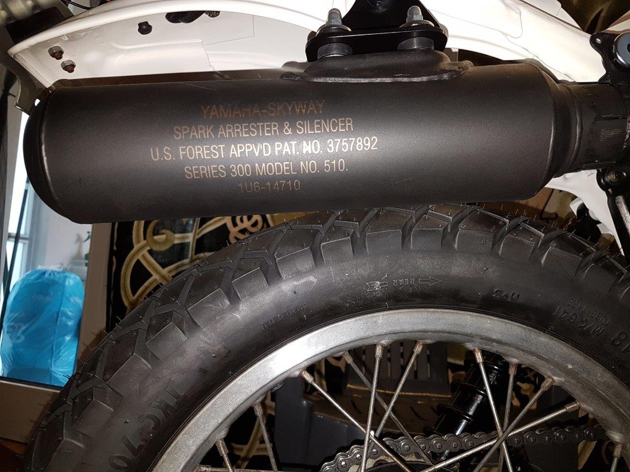 Auf dem oiginalen 1976er Endtopf, der für meine Gelände-Abgasanlage damals einfach sein musste (immerhin 3,5 kg leichter als das 1977er Sytem), findet sich genau die gleiche 'Inschrift' mit der Zulassung der US-Forstbehörde eingeprägt wie auf dem letzten Foto weiter oben ...