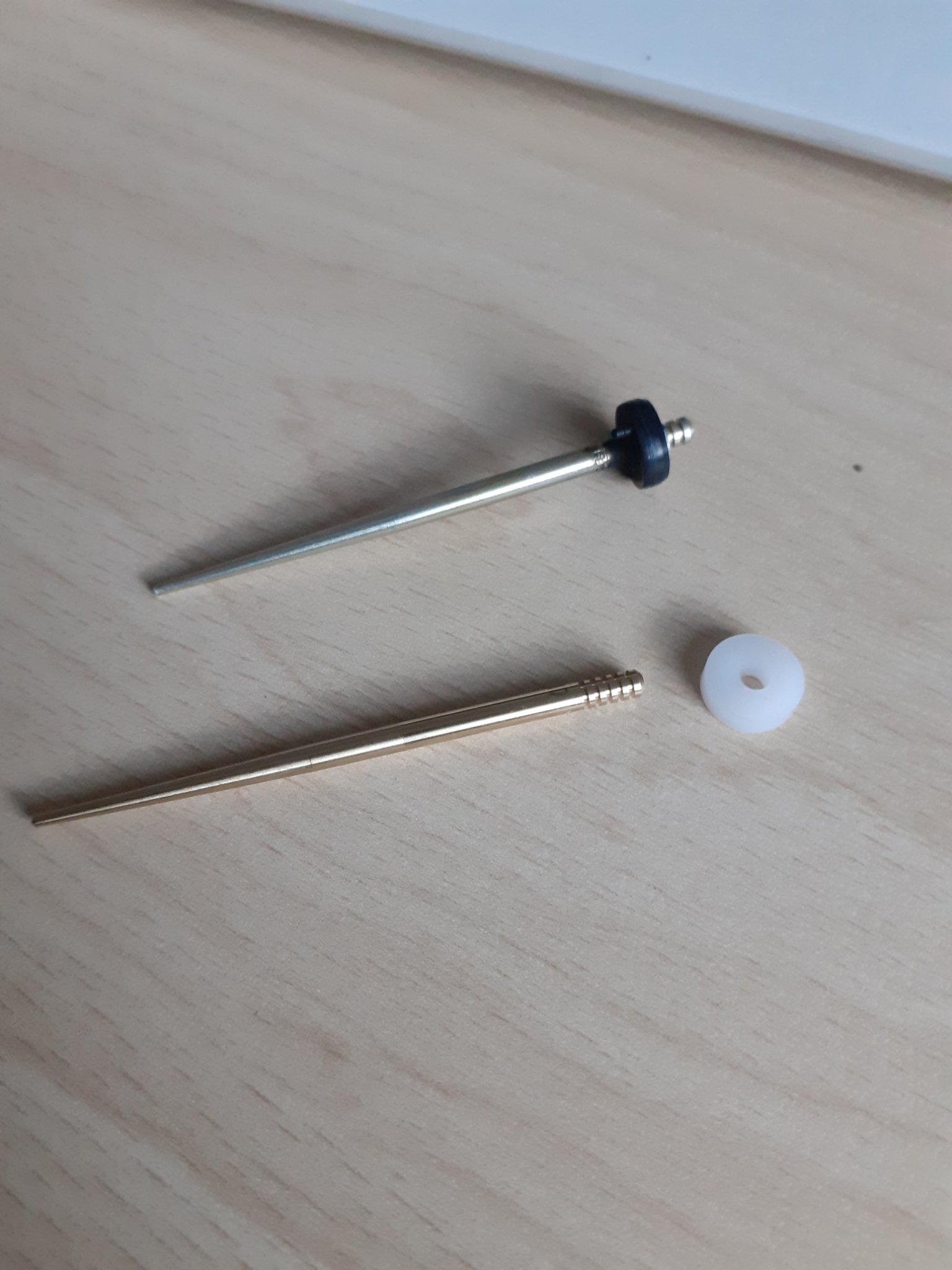 Des weiteren möchte ich die Große Düsennadel wechseln .Das orig. hat den schwarzen Ring fest verklebt an der Nadel . Bei der neuen muss ich den ring hier Weiß aufschieben . Jetzt meine frage schiebe ich von der spitze her oder über die Einkerbungen ? auch hier ein paar Bilder. jetzt schon mal Danke für eure Hilfe.