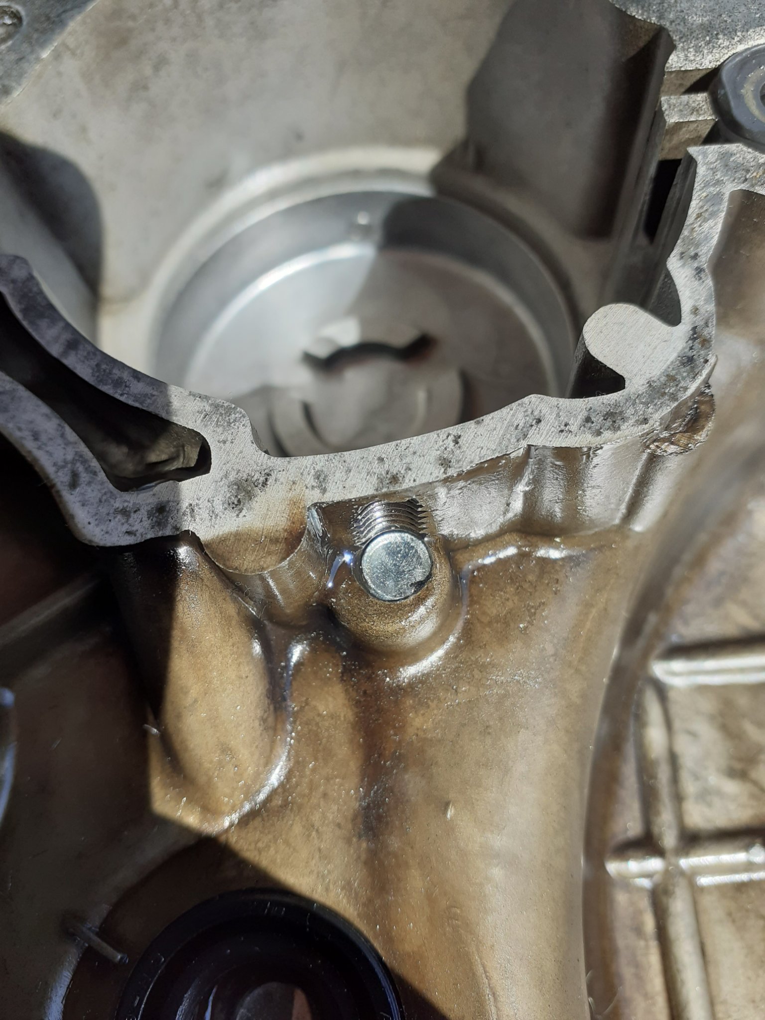 ich weiss aber leider hat der Vorbesitzer ein M8 Gewinde durchgehen eingedreht. Vielleicht etwas Dichtmasse am Anfang des Gewindes schmieren ? Mal sehen aber ich denke so viel kann da nicht rauskommen.