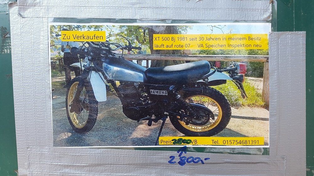 Seit einigen Tagen wird auf der Info-Tafel des Fährstübchens vom Kornsand gegenüber Nierstein eine recht preisgünstige XT angeboten!