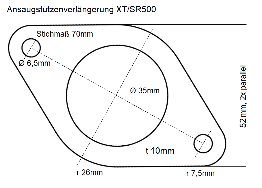 Ansaugstutzenverlängerung zwischen Vergaser-Gummiflansch und Zylinderkopf