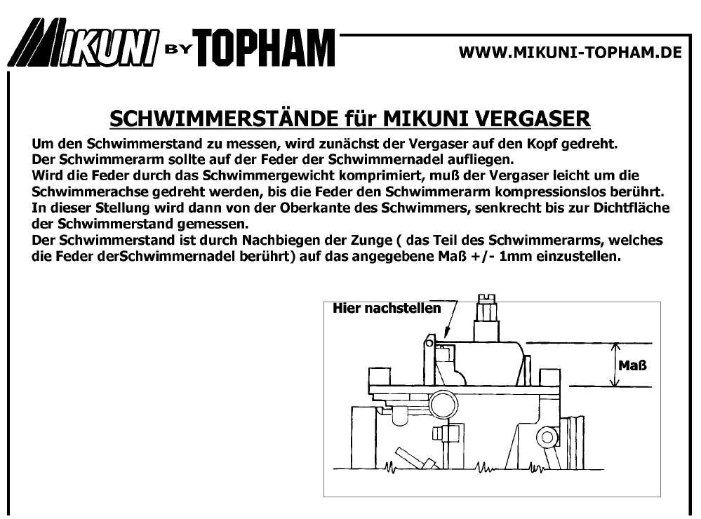 Topham sagt zur Einstellung des Schwimmerstands an Mikuni-Vergasern: