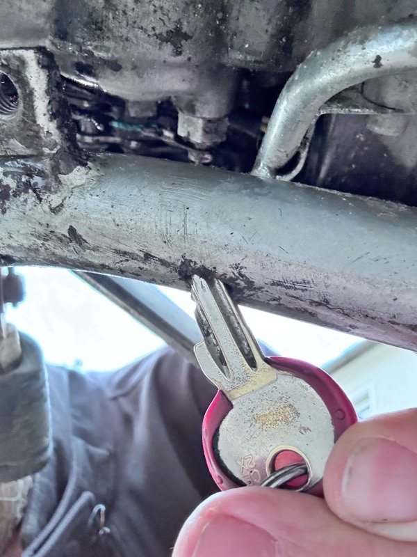 Eigentlich wollte ich rausfinden wo das Öl rausschwitzt und habe von unten mit Bremsenreiniger entfettet.