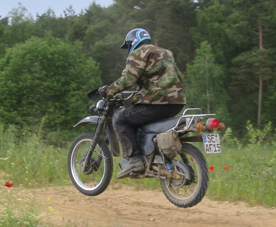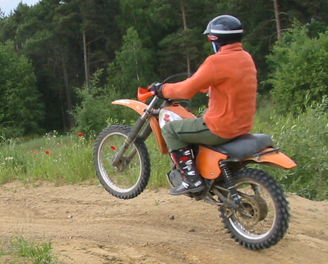 Also Leute, Jonni, Rammel und ich(um jetzt nur die XT/TT-Fraktion zu nennen)und Steffen und Ulli als Zaungäste, hatte einen wunderbaren Wellnesstag. Rammel hat zwar anfangs die Zubehörindustrie konjunkturell gestärkt, indem er sich zweimalig abgemault hat und jeweils seinen Kupplungshebel einbüsste, aber morgens war der Kurs auch sehr hart, und staubig war's obendrein, aber als es zum Mittag hin eine halbe Stunde geregnet hatte, war der Kurs sehr sehr geschmeidig zu befahren und es hat einen Riesenspass gemacht. Mein Ziel, Anlieger zügig zu durchfahren und Sprünge zu machen, habe ich voll erreicht. Das gibt ein gutes Gefühl.