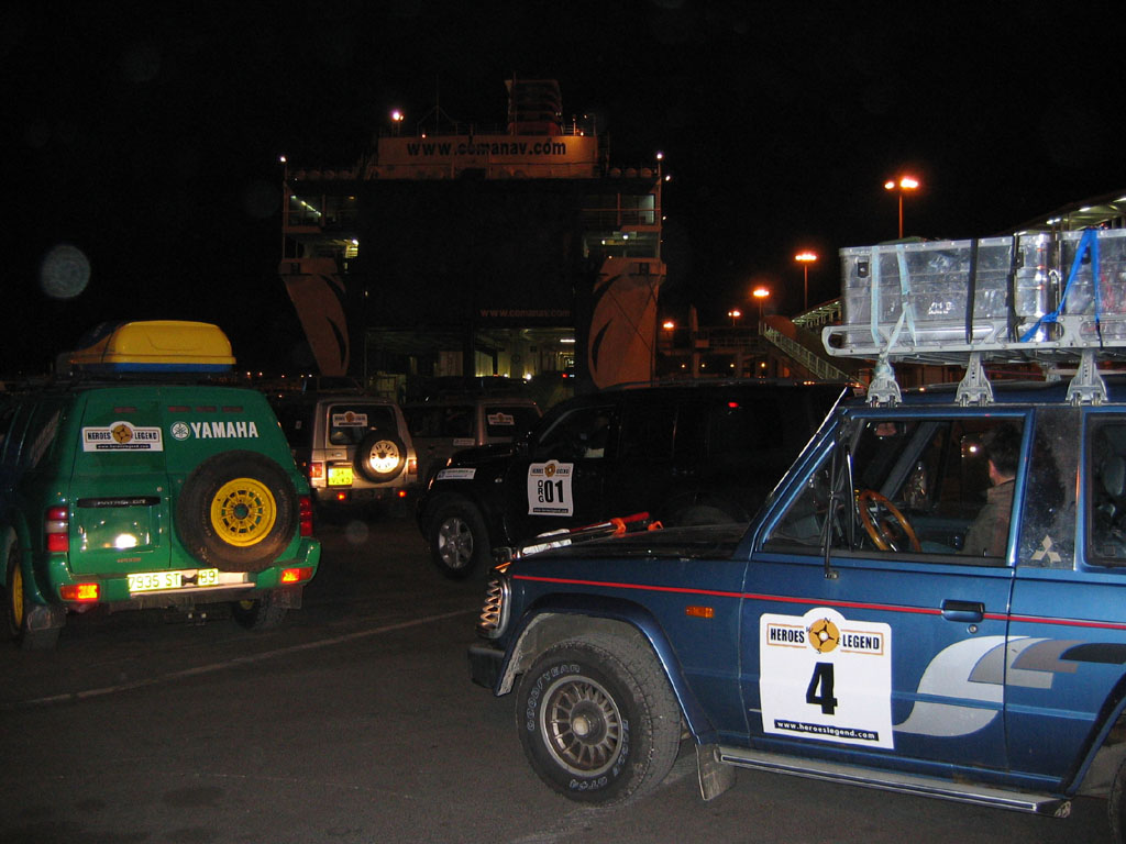 Kurz in die Kabine und weiter zum Briefing in die Bar. Auriol und Henk müssen ganzschön gegen die Geräusche der klapprigen Fähre gegenanbrüllen. Das Briefing geht bis 23.00 Uhr und bis Mitternacht brauchen wir noch die Änderungen ins Roadbook einzutragen. Glücklicherweise haben wir die GPS Punkte schon im Hafen eingegeben und auf die GPSse gespielt. Morgen soll es also zwei SS geben. Die erste beginnt 90km nach dem Hafen Nador mit einem Frühstück von dem ehemaligen Paris-Dakar-Cateringservice.