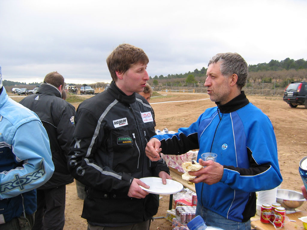 Nach einer Nacht mit dem schnarchenden Harald klingelt wieder das Handy um 6.00 Uhr. Vier Mann duschen dauert auch seine Zeit und so kommen wir gerade um 7.00 Uhr zum Frühstück. XT abladen, Marco fertig machen und zum Start. Lutz und ich schrauben noch den Heckträger ab, da es ja einen Trial-Parcours für die 4x4s geben soll. Der Start ist nur wenige hundert meter oberhalb des Hotels, welches im Übrigen sehr schön und gemütlich aus Holz gebaut ist. Beim Start sieht man gleich den Trial Parcours, den auch die XTs zu Beginn der Strecke fahren. 9.30 Uhr geht es los. Gestartet wird in umgekehrter Reihenfolge der Gesamtplazierung. Marco steht als achter am Start. Lutz drückt die grüne Taste und Marco fährt los auf den Trial. Er macht das gut und fährt weiter zum Start der eigentlichen Roadbooktour. Lutz und ich lauschen dem Briefing für den 4x4 Trial, doch irgendwie kommt es nicht zum Start. Die Zeit vergeht und wir plaudern mit zwei Spaniern, die nächstes Jahr dabei sein wollen. Sie wollen auch einen Defender kaufen und suchen eine XT in Deutschland. Ich lade sie sofort zum Treffen in Slowenien ein, und Lutz drückt ihnen einen KEDO Katalog in die Hand.