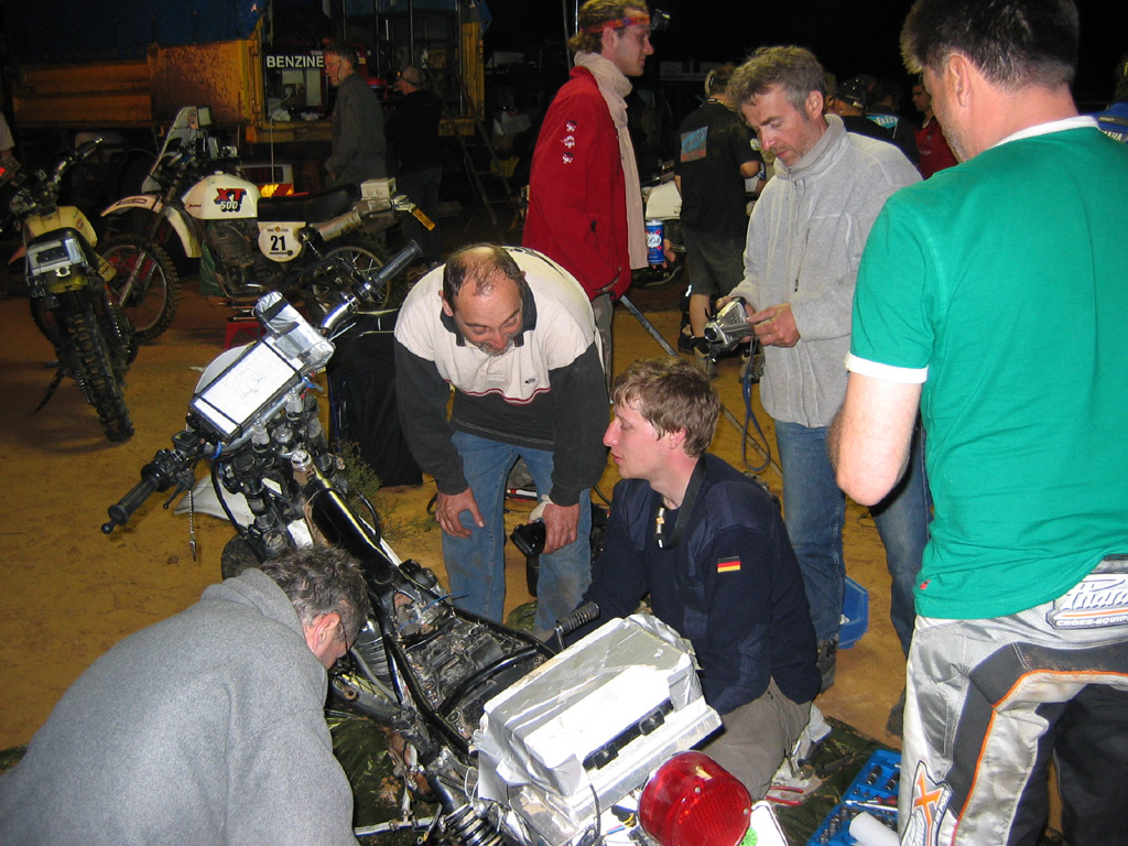 Nun, ich will ja nicht unhöflich sein, aber von den 61 Punkten gehen wohl 60 auf Lutz’ Konto und einer auf meines. Ich war etwa 1 Minute zu spät, aber Lutz mußte leider zweimal das platte Vorderrad flicken und war dann viel zu spät. Team 4 ist der Motor verreckt und sie wurden per PickUp abgeholt. Warum da nun andere noch mehr Strafpunkte haben, das weiß ich nicht.