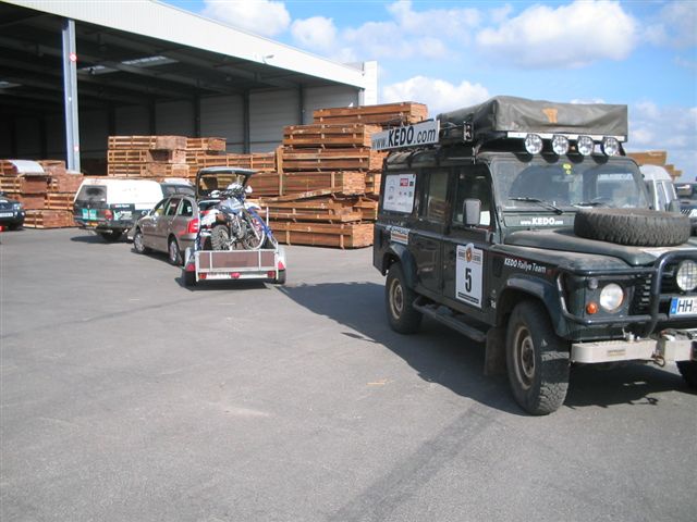Da ich wenig Lust verspüre mal eben 700km nach Antwerpen zu eiern, frage ich bei Johny von den Patsers in Belgien nach, ob er Landy und XT aus dem Hafen zu sich holen kann. Er hat zufällig frei und es findet sich auch Stef von den Patsers und Michelle aus Frankreich, der Johny in dieser Woche besucht. Zu dritt fahren sie in den Hafen und suchen dort Rouel und Anne Marie auf. Im Prinzip gibt es keine Probleme, nur die grüne Versicherungskarte fällt dem Zoll auf, denn sie ist zeitlich bis zum 20. März begrenzt. Man will Johny nicht mit dem Landy aus dem Hafen fahren lassen. Er ruft mich an und ich erkläre, dass diese Karte nur begrenzt ist, weil sie für Marokko gültig ist, aber das glaubt oder versteht man nicht. Also rufe ich schnell meine Versicherung an, die auch sofort eine Bestätigung nach Antwerpen faxt. Schon ist alles gut und Landy und XT verlassen mit den freundlichen Helfern den Hafen.