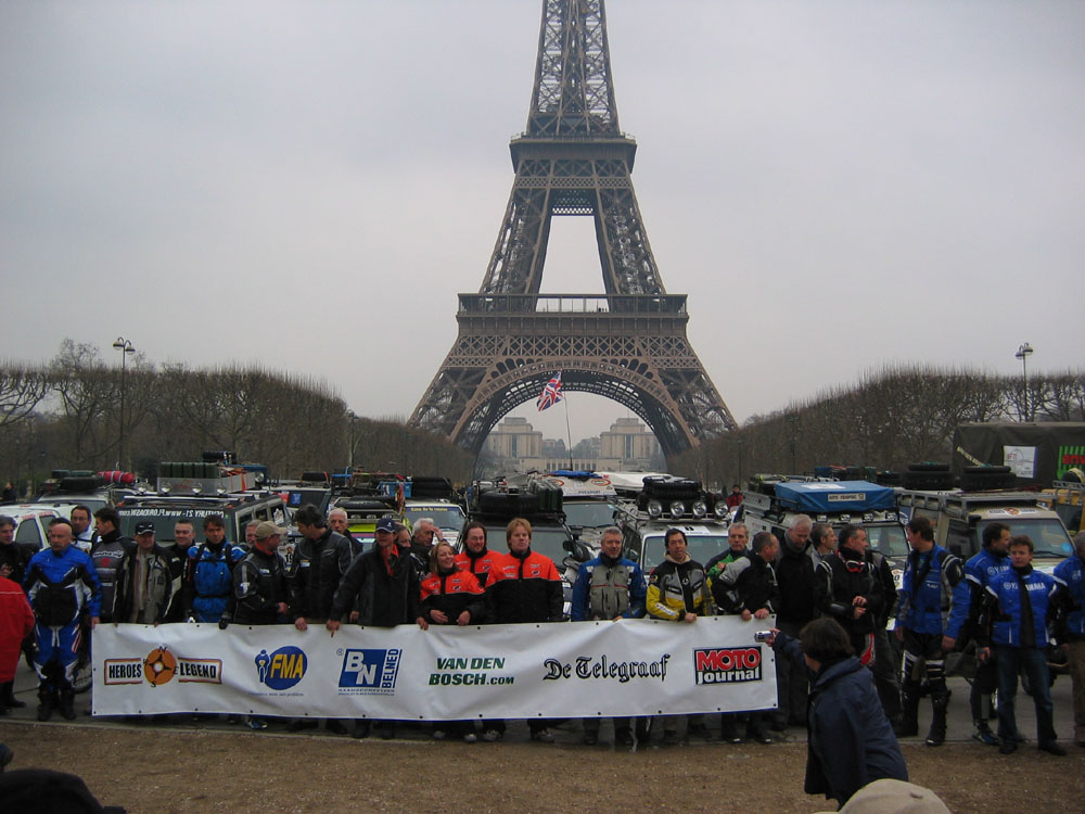 Im Vergleich zu 2006, wo wir von zwei Polizeimaschinen eskortiert wurden, war es dieses Jahr schon cool, dass die Polizei mit fast 20 Maschinen dort war. So war es kein Problem den Konvoi von 30 Motorrädern und 50 Wagen zum Eifelturm zu lotsen. Ich habe die roten Ampeln nicht gezählt, aber es ist schon klasse so durch Paris zu fahren. Schön auch der X5 der Engländer vor uns, der einen satten Auspuffsound hat.