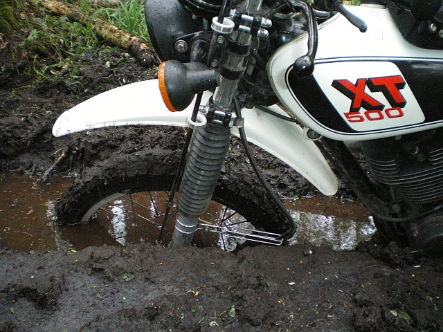 Ich hatte am Ende der Fahrt übrigens eine spontane Idee, wie man eine XT500 auch mal ohne Ständer abstellt, seht selbst: