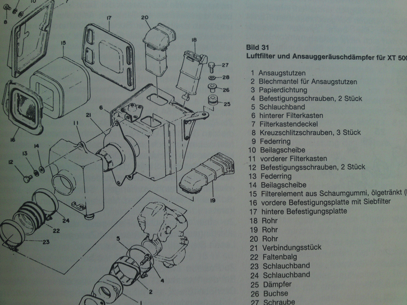 Die verworfene Flanschfläche an deinem Lufikasten solltest du vorher aber versuchen zu richten, sonst wird das auch mit neuer Dichtung nicht dicht. Kasten ausbauen, Teil 11 und 21 abbauen, damit du den verzogenen Teil auf eine ebene Fläche spannen kannst. Mit einer Heißluftpistole den Kunststoff um das Loch großflächig vorsichtig erwärmen, bis er beginnt leicht weich zu werden. Dann den Kasten mit der weichen Fläche auf die gerade Unterlage legen und von innen mit einem Holzbrett und Schraubzwinge leicht festspannen. Nach dem Abkühlen sollte der Kasten wieder gerade sein. Das Blechteil vor dem Bekleben mit der neugebastelten Dichtung auch auf Verzug kontrollieren und ggf. richten.