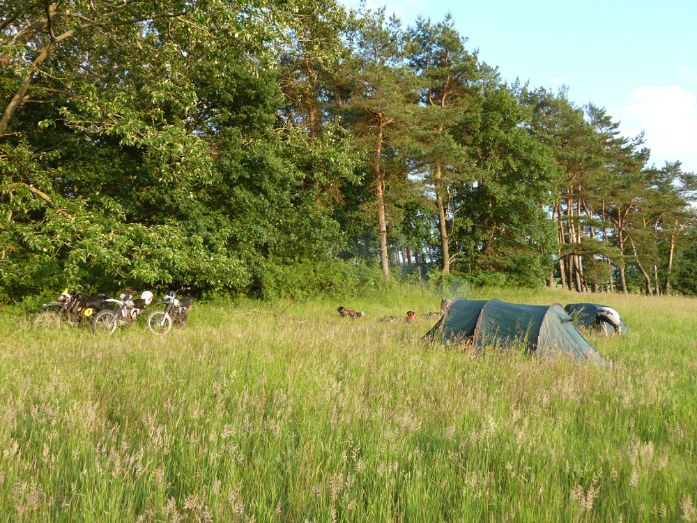 Übernachtet haben wir zusammen mit ca. 2.000.000 Mücken am Waldrand auf einem Feld.
