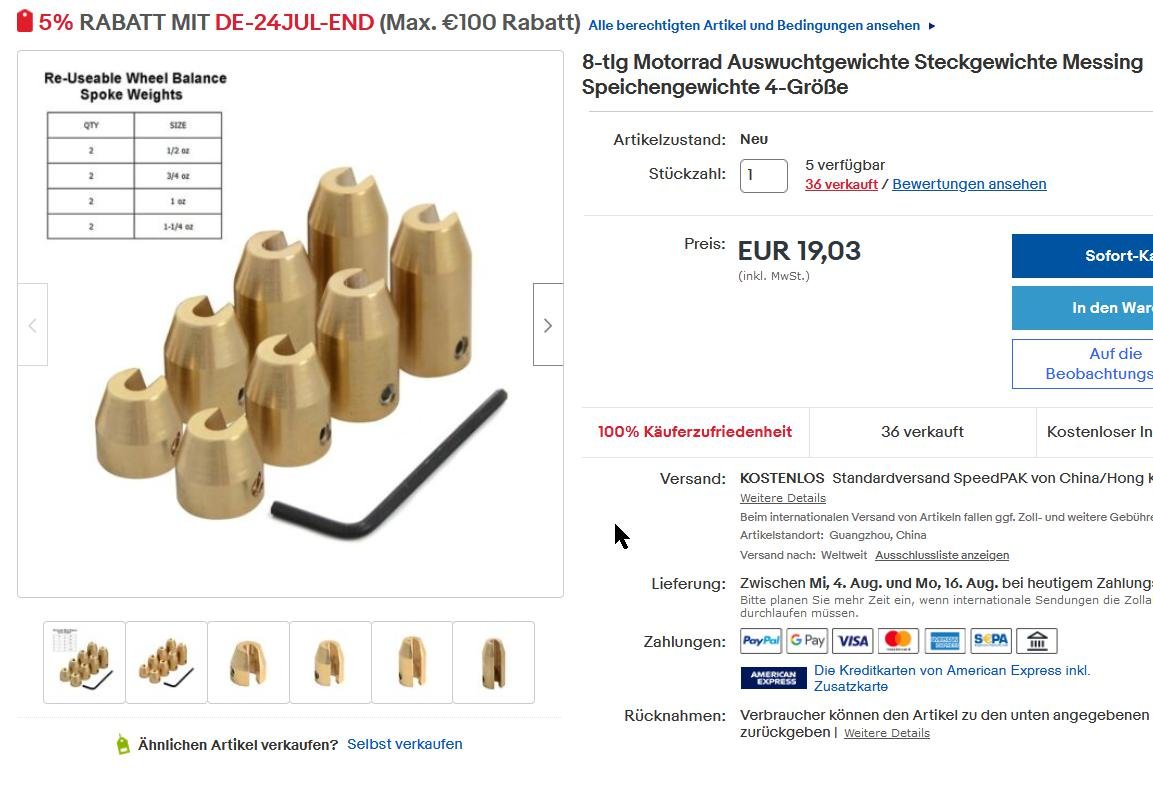 Speichengewichte bekommst Du ebenfalls in der „Bucht“