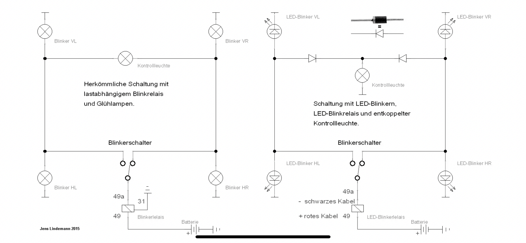 Zusätzlich muss die Kontrolleuchte mit Sperrdioden umgeklemmt werden.