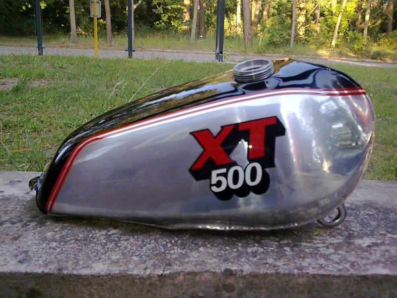 Genau, zurück zum Thema! Ich würde dir empfehlen den Tank mit Klarlack zu versehen! Erstens sparst du dir das immer wieder nachpolieren und deine Aufkleber sind vor Benzin etc. geschützt! Aber ich würde den Tank nach dem polieren entfetten und mit einem feinen Schleifpat (von 3M) noch mal anzurauen nenne ich es jetzt mal! Jetzt fragst du dich sicherlich, warum du erst den Tank polieren sollst, wenn du ihn danach eh wieder anschleifst bzw. anpattest ! Das macht man damit der Klarlack an den Untergrund haften kann sonst platzt der irgendwann lustig vor sich hin (Steinschlag etc.) ! Ich würde ihm aber einen Schleifstrich in eine Richtung geben , weil es dann wie eine Aluminium Oberfläche schimmert/wirkt ! Ich würde ihn gleichmäßig Waagerecht schleifen, ist glaube ich auch im Original so ! Der Glanz kommt dann mit dem Klarlack zurück , natürlich nicht so Brilliant als wenn er nur Poliert wäre ! Was auch gerne gemacht wird ist, den Tank nach dem polieren , Klar Pulver beschichten zu lassen , dann erhältst du die Anhaftung über die Schichtdicke des Pulvers und brauchst dadurch nicht vorher anpatten ! Was ich trotzdem machen würde um sicher zu gehen ! Danach kannst du auf dem Klar-pulverbeschichteten Tank ganz normal dein Lackdekor aufbringen und zum Schluss noch mal mit Klarlack lackieren ! Das ganze vorher nicht vergessen zu entfetten , aber das weiß dein Lackierer , diese Arbeitschritte brauchst du ihm nicht zu erklären ! Es sei denn es ist so ein Klicker-Klacker-Kreutzstrich Sprühdosen Lackierer !?Gruß Hardy... ich empfehle mich !