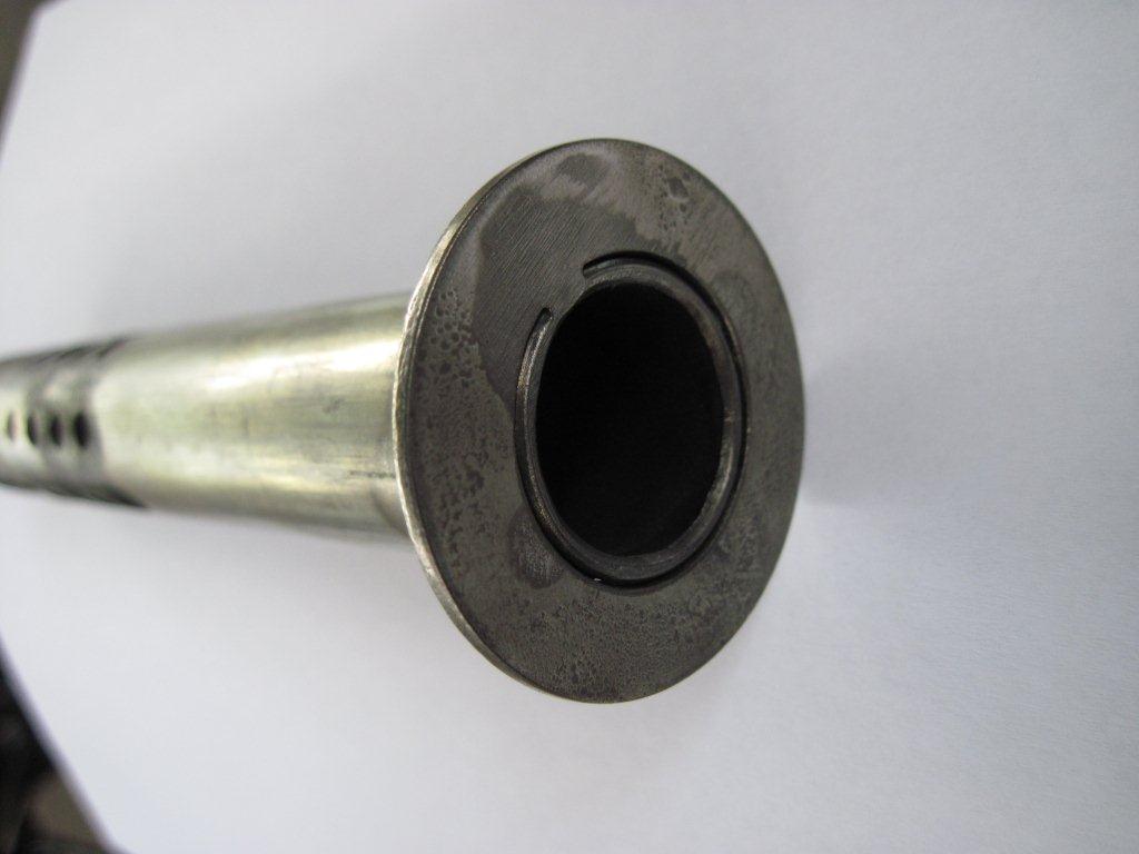 eine kleine 40° Phase an die Scheibe angedreht, wenn das Rohr und die Scheibe zusammengeschweißt sind, zur Aufnahme im Topf das Rohr noch etwas verjüngen am Schleifbock und dann schön einstecken und mit einer kleinen Lasche aus z.B. Kupferblech und einer Blechschraube sichern.