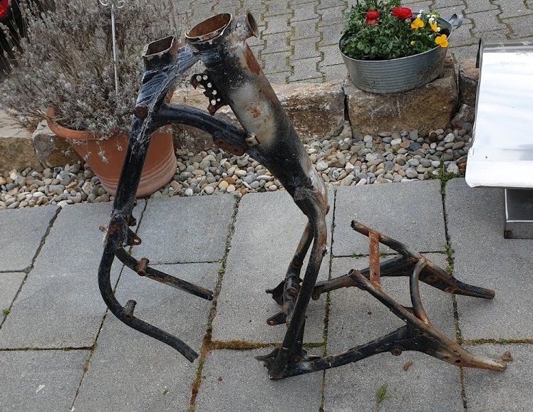 Aber bevor du alles komplett in den Schrottcontainer haust, manchmal können Rahmenausschnitte für Restauration/Umbau gebraucht werden (Fußrastenaufnahmen, Heckrahmenloop, Auspuffhalterungen etc.).