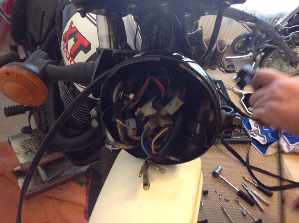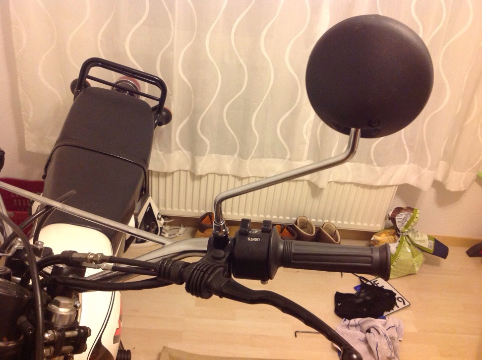 Nachdem ich die XT schon 2 Wochen bei mir in der Wohnung und schon etliche Stunden mit ihr verbracht habe, ist gestern dann auch aufgefallen, dass als Bremshebel ein umgedrehter Kupplungshebel fungiert...
