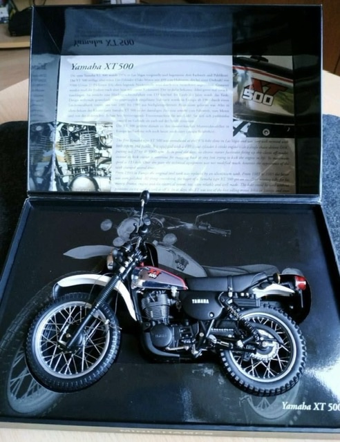 aber meine allererste XT war doch eine 80er. Darum musste Minichamps extra für mich eine Sonder-Kleinserie herausbringen. Naja. Serie ist wohl nicht der richtige Begriff wenn es nur ein einziges Modell ist. Und möglicherweise wurde auch einfach ein anderes Baujahr umgepinselt...![]()