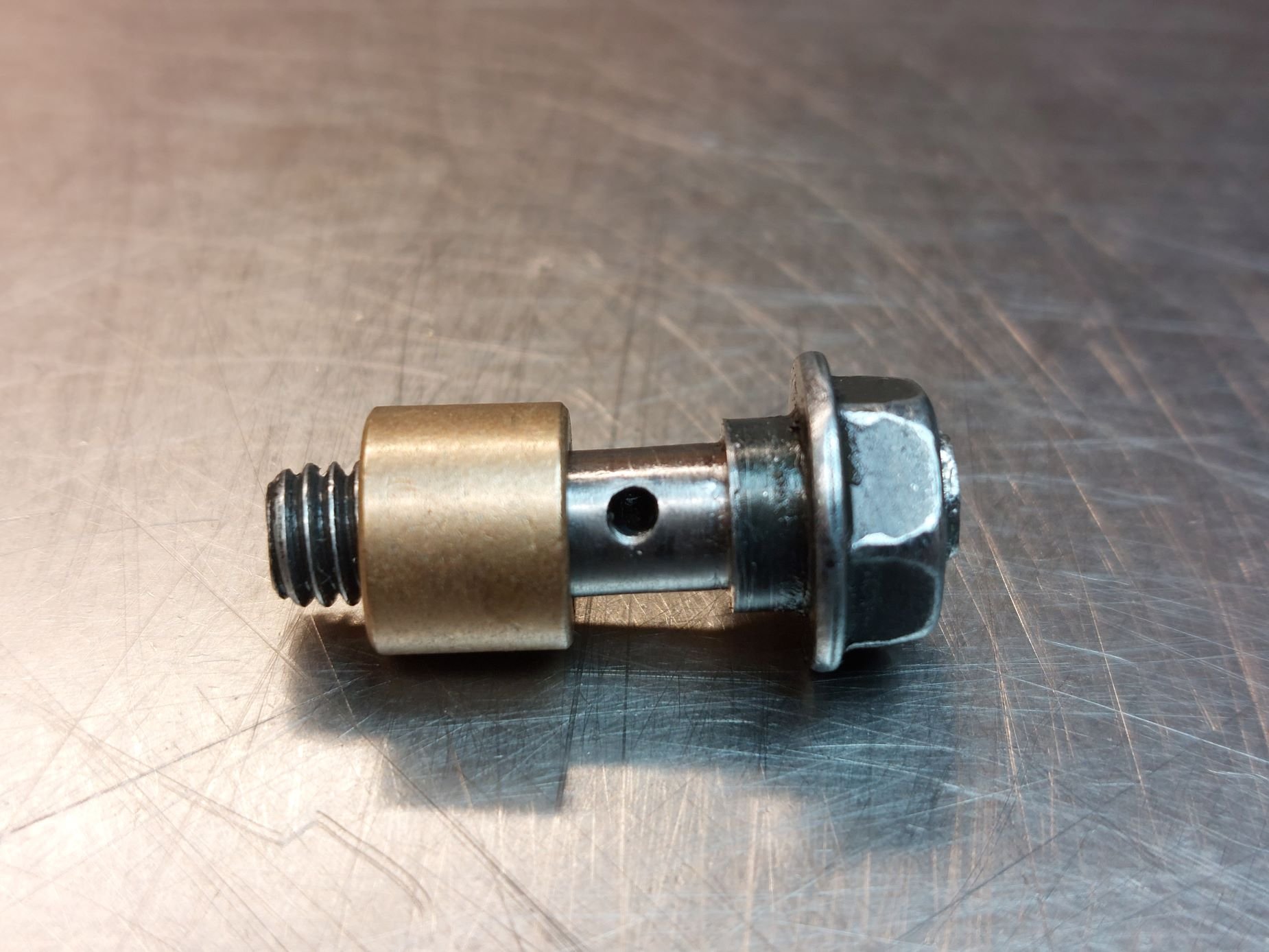 Ok, habe ich als Zubehör so auch noch nie gesehen...aber mit einer 0,81er Bohrung kann das dann mit dem original Bolzen auch nichts bringen,dann hat das ganze immer noch 2/10 Spiel...kannste also knicken...aber das lösen wir ja bald