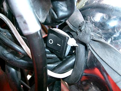 Der Schalter einer alten Kaffeemaschine dient hier diesem Zweck. Mein Problem ist nur, dass ich meistens selber darauf reinfalle.