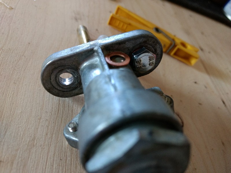 Das Gewinde zu dichten ist schwieriger, als den Kopf. Die Benzinhahnbauformen hatten damals alle Japaner, das ist also dem Zulieferer geschuldet. Wie gesagt: Zwei harte Dichtscheiben helfen, es gibt -bis auf den speziellen O-Ring- keine Probleme.