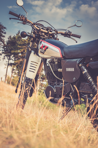 Die XT wurde von mir ab dem Rahmenbrustrohr neu lackiert, abgesehen von dem Rohr wo der Tank drauf sitzt. Hier und da habe ich auf Umbauten von Kedo gesetzt, wie z.B. den alten Enduro Kotflügel oder die Ölschmierung für die Kipphebel. Im großen und ganzen habe ich aber vieles weiter verwenden können. Die Stoßdämpfer habe ich wieder durch die Originalen ersetzt und auch die Übersetzung habe ich nach anfänglichen Versuchen von 15:42 wieder auf 16:42 geändert.
