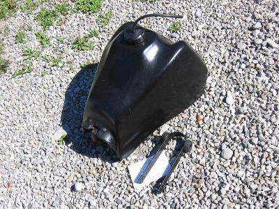 Ich habe einen 15l (oder 20l? ) Acerbis-Tank gesteigert mit U-Bügel + TÜV-Zettel + Anbaustück, wo der Originaltank befestigt wird. Nur komme ich jetzt mit der Sitzbank nicht mehr drauf.