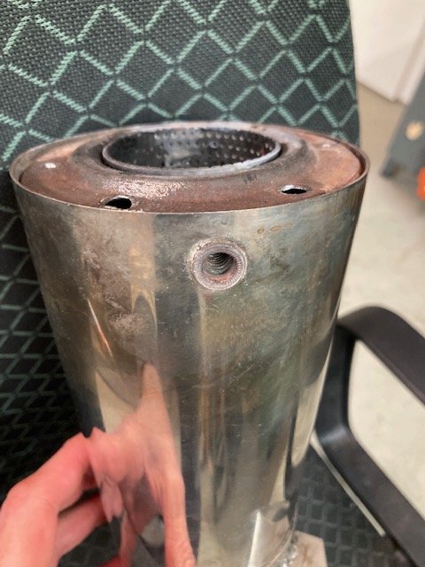 Was mich stutzig macht ist dass sich mal so garnix bewegt. Ist da was zusätzlich verschweißt? Außer den Schweißpunkten für den Halter kann ich nix entdecken. Hat jemand so einen Auspuff schon mal geöffnet?