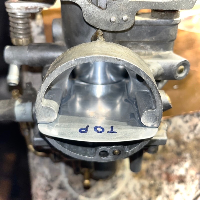 Bei Vergasermontage entdeckte ich einen Riss im schon mal ersetzten Ansaugrüssel - irritiert habe ich ihn zum eventuellen Dichten abgebaut.