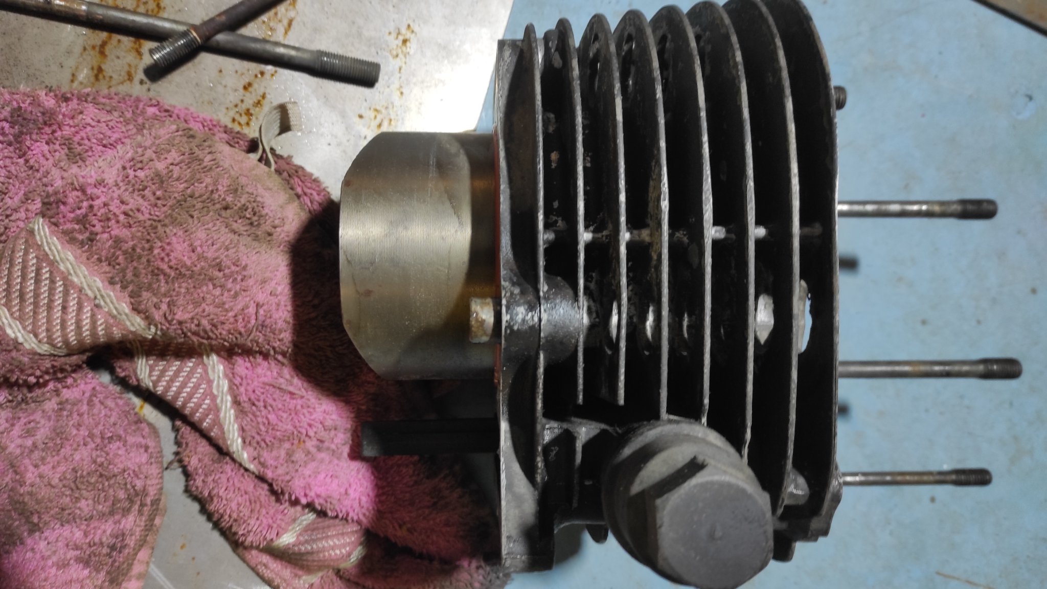 Wenn Du Dich entscheidest den originalen zu verwenden, vermeide Zylinder mit der Aufschrift "499cc". Das sind die frühen Zylinder, auch hier sind die nachfolgenden Zylinder mit der Aufschrift "499 cm³" in jedem Fall verstärkt. Ob ein "alter" taugt, sieht man an der Fußfläche (s.u.).